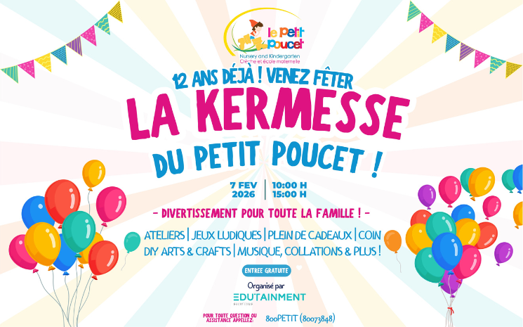 Le samedi 7 février 2026, la crèche et école maternelle Le Petit Poucet célèbrera son 12ème anniversaire à travers une grande kermesse ouverte à tous, placée sous le signe du partage et de la convivia